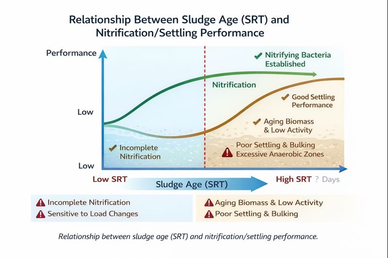 | SRT (عمر الحمأة) | لا يتم التحكم فيها بشكل مباشر | متغير التحكم الأساسي |